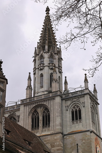 Medieval Cathedral Notre Dame at the old town of Lausanne on a blue and gray cloudy spring day. Photo taken March 18th  2022  Lausanne  Switzerland.