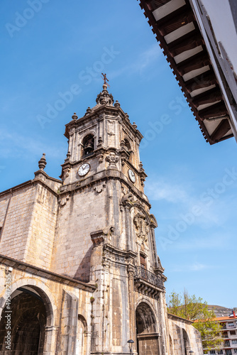 Tower of the Parish of San Martin in the goiko square next to the town hall in Andoain  Gipuzkoa. Basque Country
